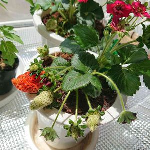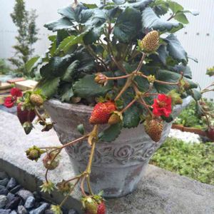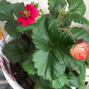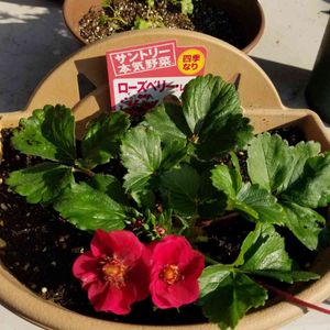 いちご🍓ローズベリー・レッド。 華やかで美しい花と育てて、見て、食べて3倍楽しめる四季なりいちご🍓 食べるのも楽しみ😋