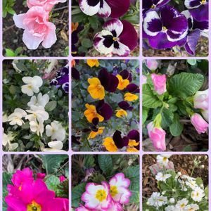 おはようございます♪ 春ですね😊 庭のお花が目覚めてきましたよ😊 ↖️アザレア ↗️パンジー ⬅️ビオラ ➡️プリムラオブコニカ ↘️プリムラマラコイデス