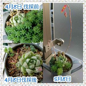 ずっと多肉の世界には踏み込むまいと、8年?くらい前に購入した宝珠が徒長していたものをこの四月に復活させて、そこでとどまっていたのですが、 見かけるたびに、多肉さん白いの可愛いなあ、お花みたいだなあ、プニプニ可愛いなあ 白いのだけなら買っちゃおっかなあ 写真を見ても可愛いのいっぱいあるなあ… 手間もかからないし… 手前は、多肉植物解禁のゲッセルリンゲアーナ 奥は放置気味でやや葉が細長くなってしまった一番長く居る宝珠 多肉は初心者なので、頑張ります😘
