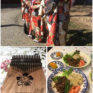 次男の お家でも、小鉢が いくら 探しても 見つからないし、お鍋 も 小さ過ぎて 、中ぐらいのサイズが 無いので、数日 お世話に 行きましたが 焦りましたぁ〜 ‼︎‼︎ 考えた結果が、作るものが 違ったり、電子レンジで 料理する事が 多くなったから かな ..... って ⁇ ほうれん草の 胡麻和え 、作っただけで 、美味しいって 喜ばれた ....... あまり 作らないのかな? 週末 、主人が 迎えに来てくれて 、水戸 と 言えば 、偕楽園🌸 お嫁さんが 連れて行ってくれましたが、着物👘姿の 4 人の美女達が お出迎え〜💖 前の人の 順番 ( これも男性 一人 ) が 終わると うちの じぃじちゃんも 一人で そそくさと 、両手に 2人ずつの ダブルの 花🌸、計 4名の 綺麗処に 囲まれて、ご満悦 でした 💓 ( 記念撮影 ) で、今回 次男家の オモチャ、 ごじゃ ごじゃ いっぱい 有った中に 、親戚の人から もらったと言う カリンバ も 入っていて、 初めて 触って 遊んでいた 主人、 気に入ったようで、帰宅後 モールに 買いに行って、カリンバ うちに 登場しました❣️ カリンバ オルゴールの様な 、 優しい 音 でした 。。。