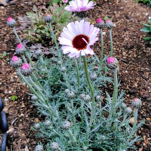 ローダンセマム アフリカンアイズ♡ 筒状花が茶色から黄色に変わっていくアフリカンアイズさんをお迎えしました! ローダンセマムさんの夏越しはできたことがないのでしてみたいですね〜☺️ 大体夏に枯れてしまうんですよね〜😰 今年はこの子でローダンセマムさん4苗目🪴👀