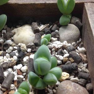 明けまして、おめでとうございます(*^^*) 昨夜、やっと自宅に戻り、バタンQで爆睡してしまいました💧 自宅で迎えた『初夢』は、どんなモノだったのかも、覚えていないほど…(^◇^;) 年末年始、あまりにバタバタしており、沢山の方にイイネ!やコメントを頂いてて、とっても嬉しく思っています💕 本日も、今から外出のため、今夜、お返事させて頂きますね(•͈⌔•͈⑅)♡ 今年も、どうぞ仲良くしてやって下さいますと、大変喜びますので、よろしくお願いいたします(•’╻’• )/ まずは、初投稿✨✨ エキノス属 碧漁蓮 この子は、去年ムーミンさん宅から飛んできた子💕 長く自宅を空け(主人と娘は自宅に居ましたが💧)、かなり心配していたのに💡 新芽、出てきてますっ‼️ このまま、スクスク🌱と育ってね((* ´艸`)) 初めての子ですが、11月からの育児の様子では、かなりお水が好きな子に思います(•͈⌔•͈⑅) スグにイジけて、シワシワアピール💧 お水をあげると、スグにピンっと身体を伸ばしてニコニコ😑✨ 涼しい(寒い)時期は、とっても育てやすい子ですね(•͈⌔•͈⑅)♡ 《簡単育児解説・覚え書》 ◎梅雨明け〜8月いっぱいは断水が望ましい ◎カット芽挿しは、オススメ出来ない。(根はダメージを与えない) ◎直射日光が当たり風通しが良い場所を好む。マイナス1〜2°Cまで耐え霜に当たってもOK!(暑さが苦手な子) ◎半月〜1ヶ月に1度、土の表面が濡れる程度の水やり。1週間以上、土が湿っていない様にしよう。 ◎冬の間、ずっと屋内に取り込んでおくと日照不足になり、そのまま春を迎え日光浴すると葉焼けの原因になる。冬も出来るだけ屋外で日光浴させてあげましょう。
