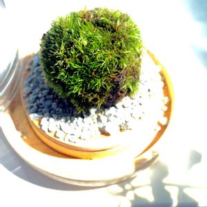 また買ってしまった、緑。イチョウ&ユキヤナギ&黒龍の苔玉。コケは山苔で、ハイゴケとはまたちがった雰囲気。