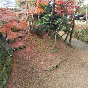 紅葉狩りに来ています。 これは、岡崎城の「空堀」(水のない堀)です。 散った葉が溜まり、独特の景観です。