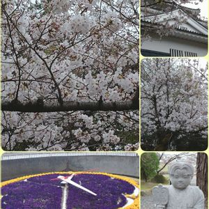 雨天決行😊 岡崎城へ😍 サクラ🌸は5分咲きかなぁ? 葵の御紋のパンジーの日時計と可愛い竹千代におあいしました☺️