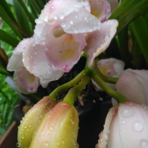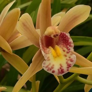 2025.05.16 遂に祖父が育てていたシンビジウムが咲きました🌸 20年を超えて...長かったです。 ずっと庭の隅でひっそりと過ごしてて見つけたのが2年前、弱々しい姿で腐りかけてましたがなんとか持ち直して無事咲く所まで来ました。 品種等は全く分かりませんがとても美しいです。 他の株も花は咲いてませんが元気になってるので今後しっかり増やしていきたいです。