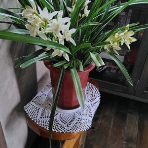今までいちばん高かった花 【シンビジュー厶】 誕生日🎂に買った あまり高いので少し自分で払いあとは次女に買って貰った 鉢が金ピカ たかいのかしら ちなみに5800円 今は鉢しか残ってない😭