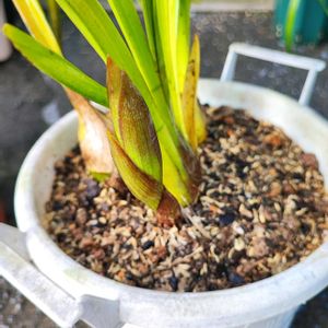 本日は晴れて暖かかったので(風は強くて冷たかったですが)シンビジュームの植え替えをしていました。去年の冬にガッツリまとめ買いし、春に庭のあちらこちらに置いて放置プレイで1年過ごしてもらってたのを全て回収。 日当たりガンガンの所に置かれてたり、途中で鉢ごと転がって土が減ってたり、なかなかハードだったと思いますが、枯れた子はいませんでした。夏頃に葉焼けもしていたような?記憶もあるのですが、回収してきてみたら皆さん葉っぱビンビンで元気いっぱいでした。偉い。強い。 状態は、買った時のバークチップのまま鉢増しだけした子達は根は多いけど根腐れ気味、実験的に木質ペレットのみで植え替えたり鉢増ししておいた子達は地上部は少ないけどめちゃくちゃ根が増えていて、白くてツヤツヤの太い根っこがびっしりでびっくりしました。意外と普通の土メインで植えた子達が、地上部も根っこもバランスよく元気に育ってました。 なので今回は出来るだけ元の植え込み材をしっかり落とし、普通の土に落とした木質ペレット&バークチップを混ぜて、更に籾殻を多めに混ぜたものを使って植え直しました。 古いバルブなども掃除しながら芽も確認し、チーム花芽?、チーム葉芽、チーム無芽に分け、チーム花芽はビニール温室の特等席に、それ以外はガレージ前の日当たりいい所に並べて軽く水やりして完了。 とりあえず、チーム花芽の子達が咲いてくれるように、冬の間しっかり確認するようにして、春になったら肥料をあげたらまた1年は放置プレイです。元気でいてくれてありがとう、来年もよろしくね。