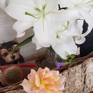 カサブランカが、残りわずかです。 あっこさんの、ゆり祭りも、今月いっぱいですね 来年も、育てたいです。 バラも咲いたので、カットしてみました。