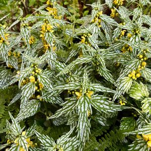あまり日当たりの良くない 北側の花壇で ラミウム 咲き始めました💛 シソ科 オドリコソウ属 和名は オドリコソウだそうです 黄色のガレオブドロンは 強くて毎年出てくれますが ピンクのシルバーっぽい🌿のマクラツムは いつも夏の蒸れでダメにしています😰 ホトケノザやヒメオドリコソウもお仲間だそうですね💕