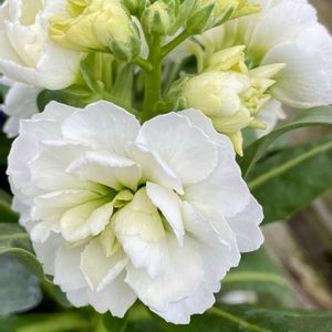 今日のお花 ストック ❀.*・゚ 白いストック 白いお花大好きです︎🤍🌿 蕾がどんどん増えてきてます しばらく楽しめそうです🎶😆 白いストックの花言葉 『思いやり』 『ひそやかな愛』 和名 『アラセイトウ』 紫羅欄花 🫒🌿🌿10