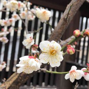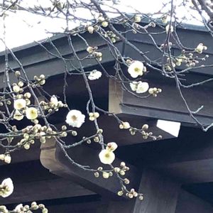 湯島天神 白い梅の中にぽつんと 赤い梅🌸 顔もほころびますね〜😊💕🎵