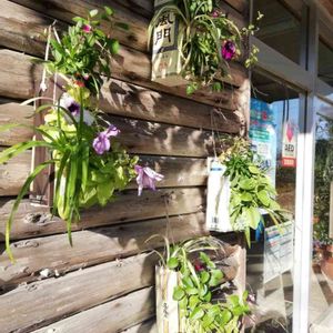 延岡市植物公園に来ています。 焼酎の紙パックに寄せ植えされた植物達。笑 手前から本格焼酎 霧島 本格芋焼酎 風門 本格芋焼酎 天孫降臨