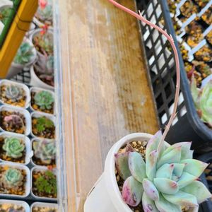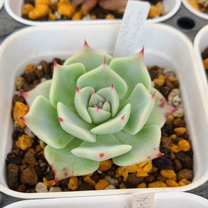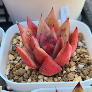 実生で選抜した苗です。 冬に葉がカンテのように枯れこむ品種なのですが、枯れこむスピードに個体差があって、 ロゼットの中心部を少し残して葉が見れないレベルまで枯れこむ個体、 画像の苗のように少しだけ枯れこむ個体や紅葉した時爪が綺麗じゃない個体などもありました。 選抜は必須だと思う品種の一つです。
