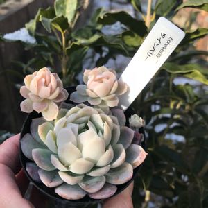 ★ピンクティップス どうも♪ 昨晩水やりしてたら、 アガボのエボニーの上に他の鉢ごと落としてしまい、 あんなに硬かった成長点付近の葉先が ヘニョヘニョに…や、やっちまいました😱 いつもこんな感じで授業料払ってるのです💦💦 トホホ😰 本日はピンクティップス♪ 名前の通りピンクに色づくティップ(爪や先端)や エッジ(縁)が美しい発色のわりと普及種?🙄 ピンクティップスは ♀プリドニス(花うらら) ♂ローラ(デレンケアナ) の交配種と言われています。 特徴は両者のいいとこどり品種ですよね✨ 園芸店などで複数株を観察していると、 微妙に母側の花うららに葉が近い雰囲気のものと、 父側のローラに近い雰囲気のものの両方ありますが、 交配種としてはかなり安定している気がします🤔 他国では「Pink Chips」だったりしますが、 単なるTips→Chipsという誤表記かと…。 チップスでもティップスでもティップでも、 呼び方はどれでもいい気がしますが、 Tips(チップス)だと助言やコツの意味もあるので あえてティップスと表記しておきます😅 -∴-∵-∴-∵-∴-∵-∴-∵-∴-∵-∴- Echeveria 'Pink Tips' エケベリア 'ピンクティップス' 和名 不明(情報募集中) 別名 ピンクティップ ピンクチップス ピンクチップ シノニム Echeveria 'Pink Chips'