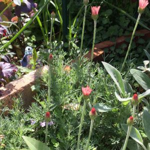🌸もぉ、少し🌸 今日は暑くなりソォ〜〜。 行動範囲が制約されて、ちょっと息苦しい感じ。 お花を見て元気モリモリになりましょう。 もぉちょっとで開花のローダンセマム。
