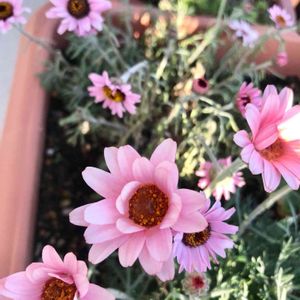 私の大好きな花🌼*・ 『 ローダンセマム』 うちには何年も夏と冬を越してくれるアフリカンアイズ(白)がいる🌼*・もう木です😁 あの猛暑☀もうちの真冬⛄も越してくれるいい子です😊✨ 今年は『 エルフピンク 』と最新品種の『 リルピンク』をお迎え💓 エルフピンクは優しいピンク咲き進むとピンクが薄くなります☺️ でも、リルピンクは濃いめのピンクをキープしてくれる🥰 薄いイエローのムーン🌙.*·̩͙ コーラルカラーのアプリコット🍎もすんごい欲しいけどグッと我慢しております(´>ω<`)きゅ〜💕
