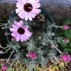 💗ローダンセマム2年生💗 🎶わっくわくさせてよ〜 ドッキドキさせてよ〜🎶 夏越しが成功したって事! 蕾がワンサカって事! 右下のように可愛いお花が見られるって事! ミポリンの歌を鼻歌交じりに、 ニマニマが止まらないって訳😆 本当は、 切れ込みシルバーリーフの先っちょに虫??って思った💦 いや、いや、可愛い蕾だから💕 気付いてからはワクワク✨ 去年の夏が暑過ぎたから、置き場所を変えながらの夏越し 梅雨もねーー、長かった!! 少し株が弱ったかなと心配したけど 蕾が付いて嬉しいな😊 ルリピンク…いっぱい見たいなぁ💗
