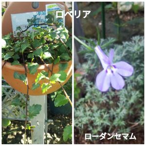 ロベリア 昨日1輪咲きだしました。 下は夏越しのローダンセマムです。