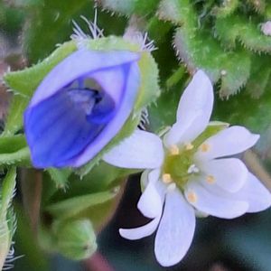 今日のお花 ˚*.꒰ ハコベ ꒱.*˚ 💙フグリちゃんと ツーショット🤍🤍🤍 実は••••• 毛深い同士 (≖ᴗ≖๑)ʊʊʊ
