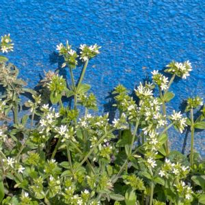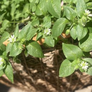 今日のお花,ハコベ。 サヤエンドウ🫛の足元にいっぱい生えてました😅