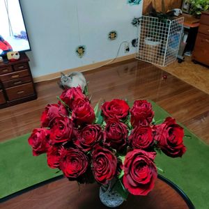 今日のお花 薔薇赤🌹 (*˘︶˘*).。*♡ 1枚目 今年2月誕生日時撮影 2枚目 我が家の白薔薇とガーベラにもらった赤薔薇 12月撮影 3枚目 やっと赤薔薇の挿し木が成功しました(◍•ᴗ•◍)❤ 4月撮影