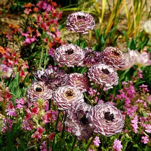 ラナンキュラス イカロスパープル (ぽくない) きつい配色だけど お日様の下ではレモンケーキみたいな色で やわらかめの色です🍋 綾園芸さん凄い♡