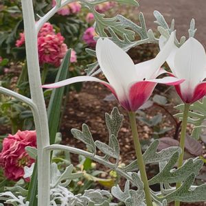 のんびりの土曜日 青空はだんだん雨雲に覆われて ザーッとひと雨降りました☔️ 昨日の強風、今日の雨 細い茎のチューリップたちには なんとも厳しい試練です こちらは降られる前の つかの間のほっとした表情🌷📸 久しぶりに おしゃれな土曜日♪🏷💖