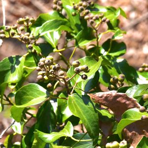 「カクレミノ」より小さなこの実はナニ❓ 「キヅタ」でしょうか❓、木質のツタで常緑なのでフユヅタ(冬蔦)とも呼ばれます。 花は10〜12月、果実は5〜6月に熟すので、キズタとは違うかな!、「目玉親父」かも?😅 アイビー(セイヨウキヅタ)の葉は対生、キヅタは互生なので見分けられます。🙃