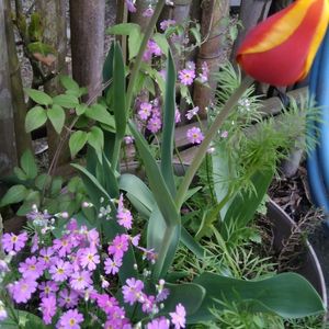 何年もうえっぱなしのチューリップの子供今年初めて花つけてくれました🌷🌷🌷🌷🌷💚