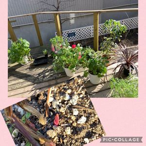 ①ブラックパール ②プチドール沙羅 横山園芸さんの赤ちゃん苗をお迎えして、約3ヶ月、今年はお花は無理かなー?と思っていましたが、可愛いお顔が見れました🙌 ③オステオスペルマム 挿し芽からの開花なのでこちらも😃嬉しい ④クレマチス「花園」の新芽も出てきました。 ⑤パンジー「ペルクレア」 サントリーナ「雪のサンゴ礁」