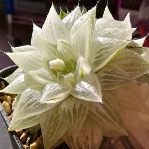 ●ススキノキ科 ツルボラン亜科 ●ハオルチア属 ●旧氷砂糖😻😻 おはようございます‼️🥱🥱🤗🥱 お迎えした時よりも、白くなってきました。☝️🤓 子株も全部ではないけど、白く変わってきてるのもあります。😁 ☝️😆良い兆しかも。 さて、今日も仕事がんばりますか…😅