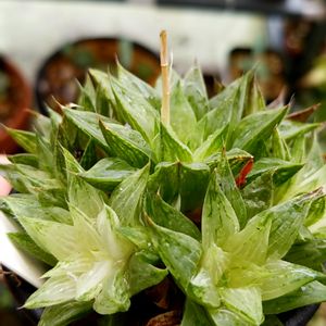 今年の年初にホームセンターで買ったハオルチア 旧氷砂糖。 写真アプリ使って頑張ってみましたw 水切れ等々で萎みまくってましたが、あれから3か月…パンパンです。 鉢も変える時に群生を外さないと手に余る😅 いい感じの斑入りもあるからお譲りしたいところですが、いかんせん郵送が面倒で😥