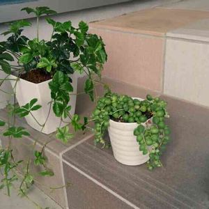 シュガーバインは本日園芸店からお持ち帰り。 グリーンネックレスは先月末に持ち帰り今日植え替え。 両方とも妻の管理。 グリーンネックレスはプレゼントしました。
