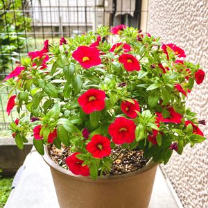 カリブラコア サンバレッド* おはようございます❣️ 花数が増えてきてこんもりしてきました♡ 赤い色がとても綺麗💕✨ 2年目の親株です❤️ 🏷️真っ赤な火曜日 に参加させてくださいね♪