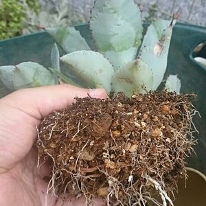 アガベ植え替え中 まずまずの根っこの張り☺💕