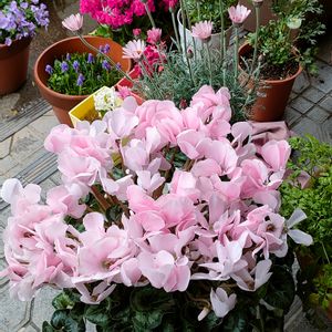 こんにちは☁ 今日はいつも行く農園の初売り🤗 大きなシクラメンを買いました😍 ランジェリーピンク💕 育てられるかな😆