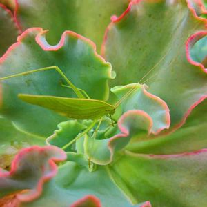 おはようございます♪ 会社に行く前に覗いたらキリギリスが遊びに来てました(*´ ˘ `*)♡ って… 葉っぱ食べないよね〰️💦