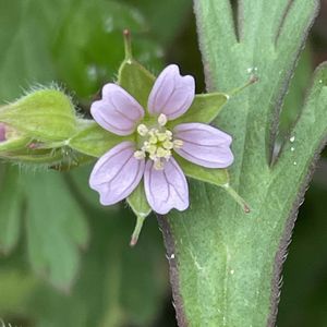 ヒメフウロ(ハーブロバート)が咲きました。 とても小さな花。 似ている葉が一緒にあり先に咲いたのがケマンソウでした😅 また、間違えてくださったのかと思いましたが、少し葉の形が違ったので咲くまで待つことにしました。 確かにヒメフウロですね。