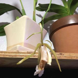 11月に咲いたセロジネの別のバルブから花を咲かせようとしてます♪( ´▽`) 更にもう一つ花芽が後を追ってます。 元気な子だね🥳 🌱🌱🌼🌸