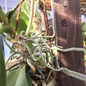 夏の間に外の棚の支柱に着生してしまった胡蝶蘭です。根をカット✂️するのは可哀想だから、仕方なくノコギリ🪚で支柱をカットしてしまいました。😅 🌱🌱🌸🌼