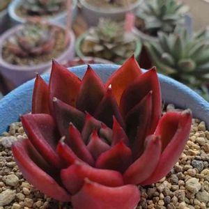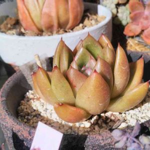 トロピカルガーデンさんの「エケおまかせセット」やっと植えました😊 しばらく連投続きます😅 8鉢目 バブルローズ 紅葉していて可愛いです。