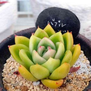 おはようございます(*⌒▽⌒*) 今日のpicは、 ビアポの名作 「多仁子の微笑み」( ´艸`)💕 昨日、届いて早速植えてみました。 最初は、白っぽいエレガントなエケベリアにしようかな?と悩みましたが、リメ缶にも映える バブルローズを選びました。💕 今日も暖かくなりそうですね。 多肉事できるかな?(//∇//)💕