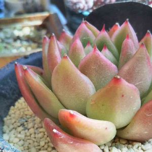 お晩です。今日は仕事。休み時間に🆙し用途してたら呼び出しが・・・ 半分しか休み取れなかった😓 昨日の二代目大和高原の多肉屋さんのポップアップストアの多肉ちゃん №2ロシアと №3バブルローズ❤ ロシアは大好きなツンツン💅まだ小さいの(^^♪