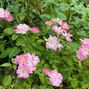 今日は〜〜😊 去年、花友さんから分けてもらったレンゲローズです🥰 去年も花は咲いたのですが、一個か二個だったような…😅🎶 今年はこんなに株も大きくなって、花芽もいっぱいで、画面上の方が切れていますが、そこにも花が咲いています‼️👍😆💕💕 みとちゃん、ありがとう〜〜〜🙋🏻💕💕💕
