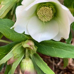 おはようございます😃 小さな庭に 🤍白い💚クリスマスローズ 咲き始めました🎶
