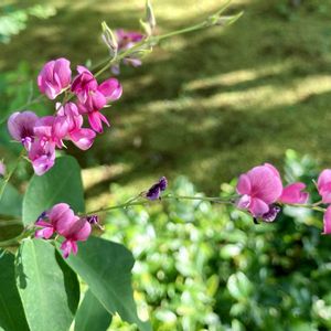 いつもありがとうございます 今日のお花𓂃𓂂ꕤ*.゚『ハギ(萩)』 苔や緑の葉を背景に鮮やかな萩の小さな花がお日様にキラキラ輝いてとても綺麗でした•*¨*•.¸♬︎✧︎*。