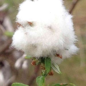 キク科ヨモギ属 蓬 これはヨモギクキワタフシ(虫こぶの一種) ヨモギワタタマバエが作り、中に幼虫がいる 綺麗な綿帽子、フワフワ! 見ても触っても綿だ 摘んで引っ張ても中々取れない 綿は産卵した所(虫えい)から生えてくる