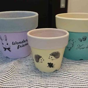 今まで100均の鉢に植えることが多かったのですが、素焼き鉢にペイントとデコパージュしてみました(*´-`) 動物シリーズ🐰