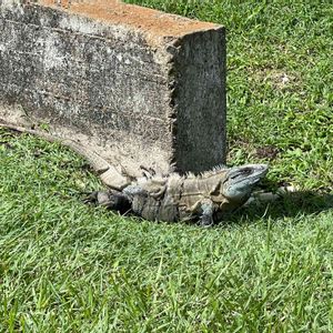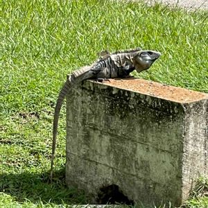 うちの入り口の側溝に住んでいるイグアナさんです。少し青っぽいのが特徴です。皮がめくれています。脱皮途中でしょうね。 近づくとすぐに側溝にに隠れちゃいます。 その他う お家の周りには大小様々10匹以上も住んでいます。穴だらけです。
